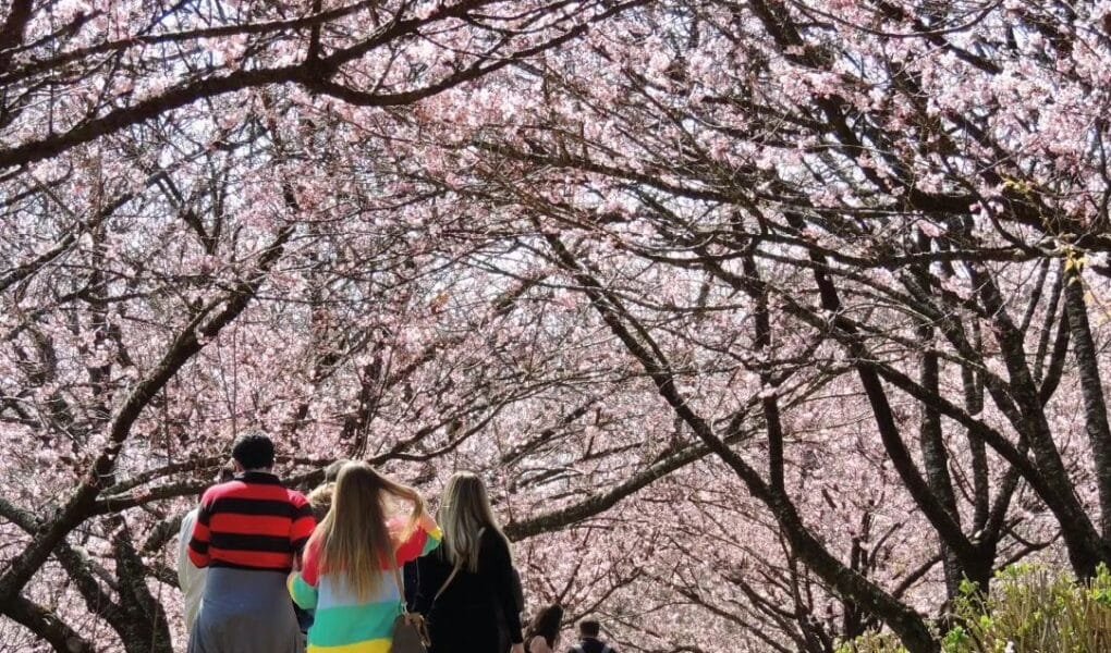 Desde 1936, as cerejeiras dos tipos Yukiwari, Himalaia e Yoko florescem nesta época do ano, em Campos do Jordão e acrescentam mais beleza à paisagem da estância da Serra da Mantiqueira, que fica a 172 quilômetros da capital paulista.