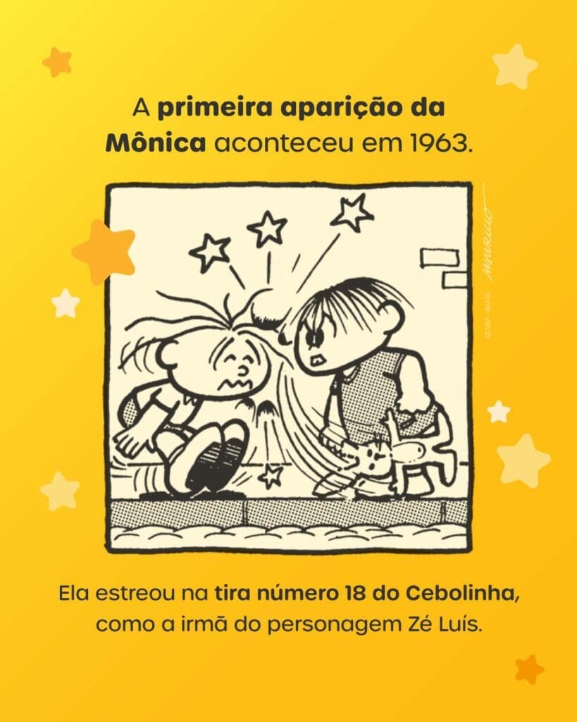 Personalidade marcante – Em 1963, Mônica surgiu na tirinha do Cebolinha como personagem secundária, mas logo tomou à frente da turminha, sucesso explicado pela personalidade forte e cativante, que rapidamente ganhou o coração dos fãs. Suas histórias já traziam mensagens sobre a importância da