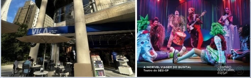 SESC – as chamadas Unidades Operacionais são destinadas à cultura, ao esporte, à saúde e alimentação, ao desenvolvimento infantojuvenil, à terceira idade, ao turismo social e às demais áreas de atuação. A Unidade da Paulista conta com cafeteria; comedoria; convivência; espaços de brincar, de leitura, de tecnologias e artes; além de oficinas culturais de multiuso; salas de espetáculos e de exposições. Destaque para o Mirante, localizado no 17º andar, de onde é possível apreciar vista privilegiada da avenida. O espaço conta com horta, na qual são cultivadas hortaliças, ervas e temperos e oferece atividades à prática da agricultura urbana.