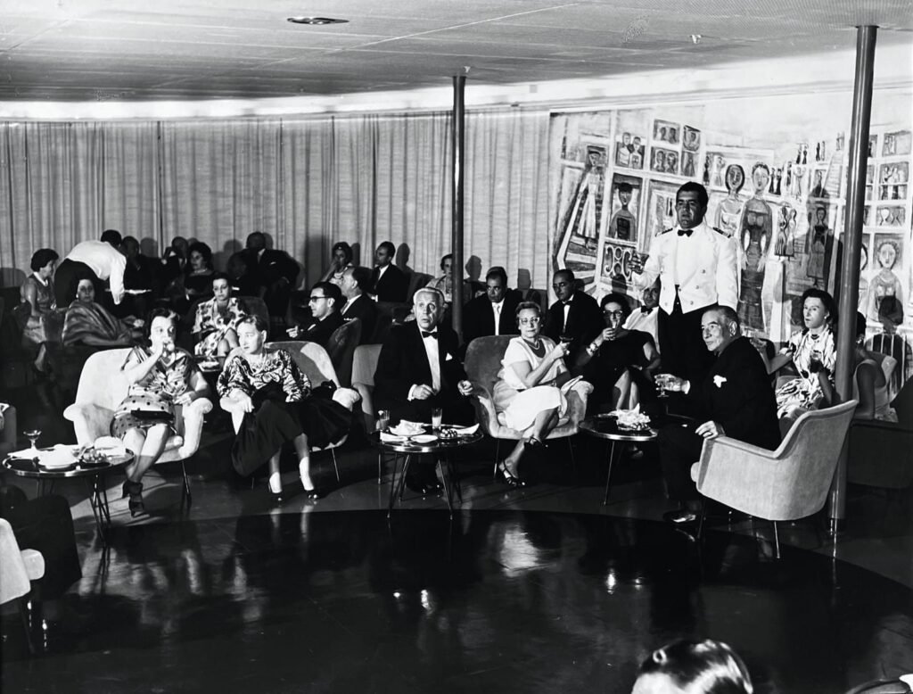 Talvez o maior desafio dos abastados passageiros da primeira classe dos clássicos transatlânticos, no século passado fosse planejar o conteúdo das malas e baús de viagem — a cada duas noites, uma era de gala. Não se considerava de bom tom repetir vestidos, e não era incomum ver desfilar estolas entre taças de champanhe nos coquetéis patrocinados pelo comandante. Fazer caber os sóbrios volumes nos camarotes dos deques superiores era outro problema: as travessias duravam, em média, 15 dias. Já os cavalheiros tinham a missão facilitada pela praticidade concedida pelos elegantes smokings, nas versões tradicional (pretos) e summer (brancos ou creme). Garçons percorriam discretamente as estações com bandejas de prata servindo finos canapés, enquanto um pianista europeu oriental interpretava standards do jazz no piano de cauda. Era doce viver no mar.